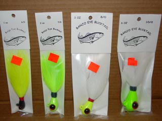 Bucktails 6/0 and up -- $ .25 off. Many head/eye colors,