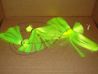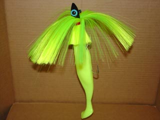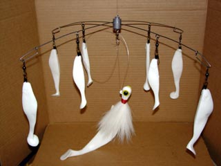 umbrella is rigged with 6" shad, trailed by a large